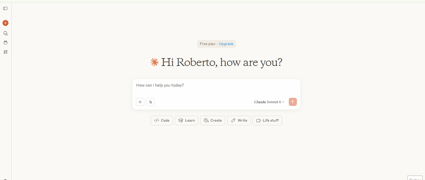 ⚠️ Importante: La versión gratuita de Claude tiene límites de uso diarios. Si los excedes, necesitarás esperar 5 horas antes de hacer nuevas solicitudes, por lo tanto nuestras opciones son: esperar a que se reinicie o actualizar a un plan de pago para uso extendido (que también tiene límites, pero más altos).