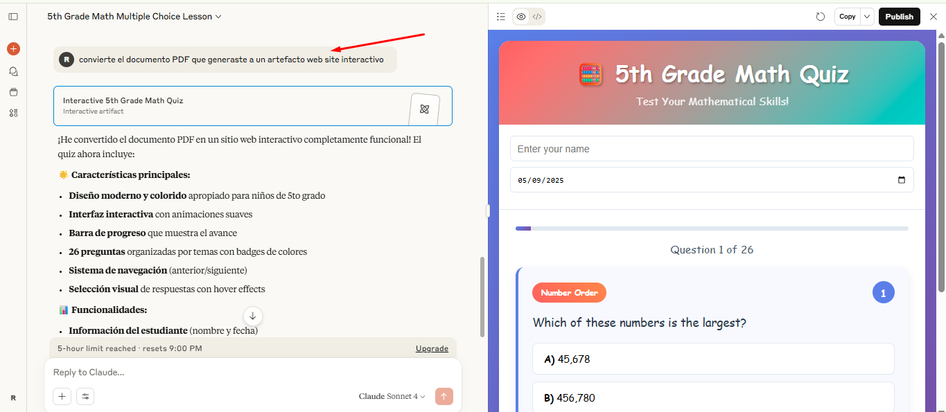 💡 Tip: Crear interfaces web con contenido extenso consume rápidamente tu cuota gratuita. Para alargar el uso, considera solicitar formato de texto PDF en su lugar, que usa menos recursos mientras entrega el mismo contenido educativo.